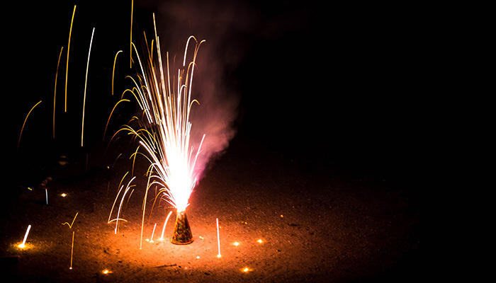 People light fireworks, such as sparklers and rockets to illuminate the night sky with bright colours and sounds. The loud noises are believed to ward off evil spirits, while the bright lights represent the return of Lord Rama and the joy of the celebration. Many people enjoy community displays or family fireworks at home.