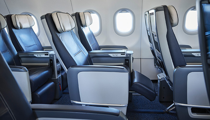 Upgrade to Club, Air Transat’s exclusive Premium Economy cabin featuring just 12 spacious reclining seats – the widest of premium economy seats to Canada with a six-way headrest and footrest, as well as gourmet cuisine served with select wines, complimentary beverages and snacks, travel amenities, individual touch screen monitors with USB and power outlets, 2x 23kg checked baggage allowance, and priority airport services.