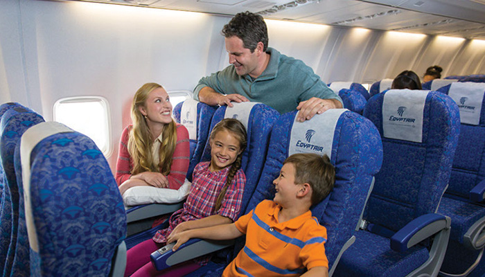 In Economy Class with EgyptAir, the seat width is 18”, and seats include a four-way headrest and footrest, as well as power outlets and a 10.6” screen. EgyptAir’s entertainment system offers a diverse choice of movies, TV shows, and audio channels from around the world.