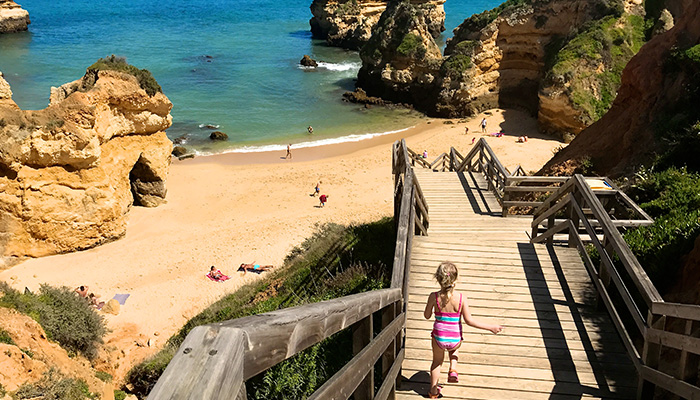 The Algarve has a scenic coastline with golden beaches, hidden coves, and family-friendly towns full of markets and activities.
