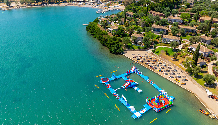 At Ikos Dassia, families can enjoy a luxury all-inclusive escape with beachfront pools, kids’ clubs, and sports activities for all ages. Children can take part in fun programmes, and parents can take advantage of the spa treatments, fine dining, or watersports. Modern apartments with living areas and kitchenettes make staying with kids convenient and effortless, and the whole resort is within easy reach of Corfu town.