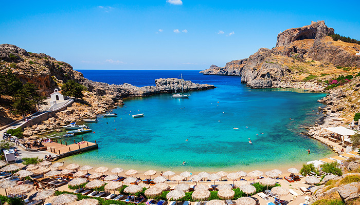 Rhodes, Greece is rich in history with medieval towns and sandy beaches, offering both cultural experiences and seaside fun for all ages.