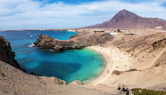Lanzarote offers unique volcanic landscapes, beaches, and interactive attractions like waterparks and animal centres.