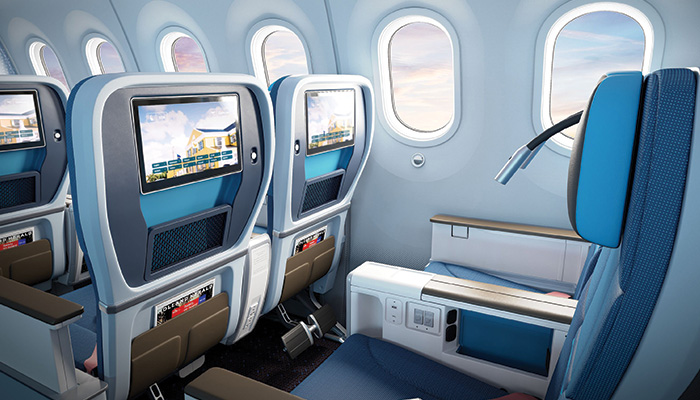 - Fully flat seats, direct aisle access