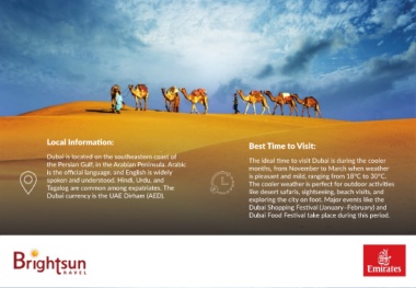 Tagalog are common among expatriates. The like desert safaris, sightseeing, beach visits, and